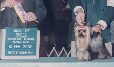 with an adult coat at 1 year old he got his first point in Dothan, Alabama!
